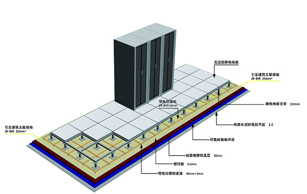 機房作為數(shù)據(jù)的處理和樞紐中心,成為信息系統(tǒng)中重點保護對象,而機房設(shè)備多,電源線、通訊線、數(shù)據(jù)線互相交叉,又極易遭受感應(yīng)雷擊,所以機房防雷問題是系統(tǒng)集成中必須重點考慮的問題,為確保各智能化系統(tǒng)穩(wěn)定可靠運行及保障機房有良好的工作環(huán)境,設(shè)計須考慮做到技術(shù)先鋒、經(jīng)濟合理、安全適用。除滿足《機房防雷設(shè)計規(guī)范》(GB50174-93)與《建筑物防雷設(shè)計規(guī)范》(GB50057-94),《建筑物電子信息系統(tǒng)防雷技術(shù)規(guī)范》(GB50343-2004)要求的同時,絕緣體的靜電電位不應(yīng)大于1kv,機房內(nèi)的導(dǎo)體必須與地面作可靠的聯(lián)接,不得有對地絕緣的孤立導(dǎo)體,接地電阻不應(yīng)大于4Ω,同時還應(yīng)符合現(xiàn)行國家有關(guān)標(biāo)準(zhǔn)規(guī)范的規(guī)定。