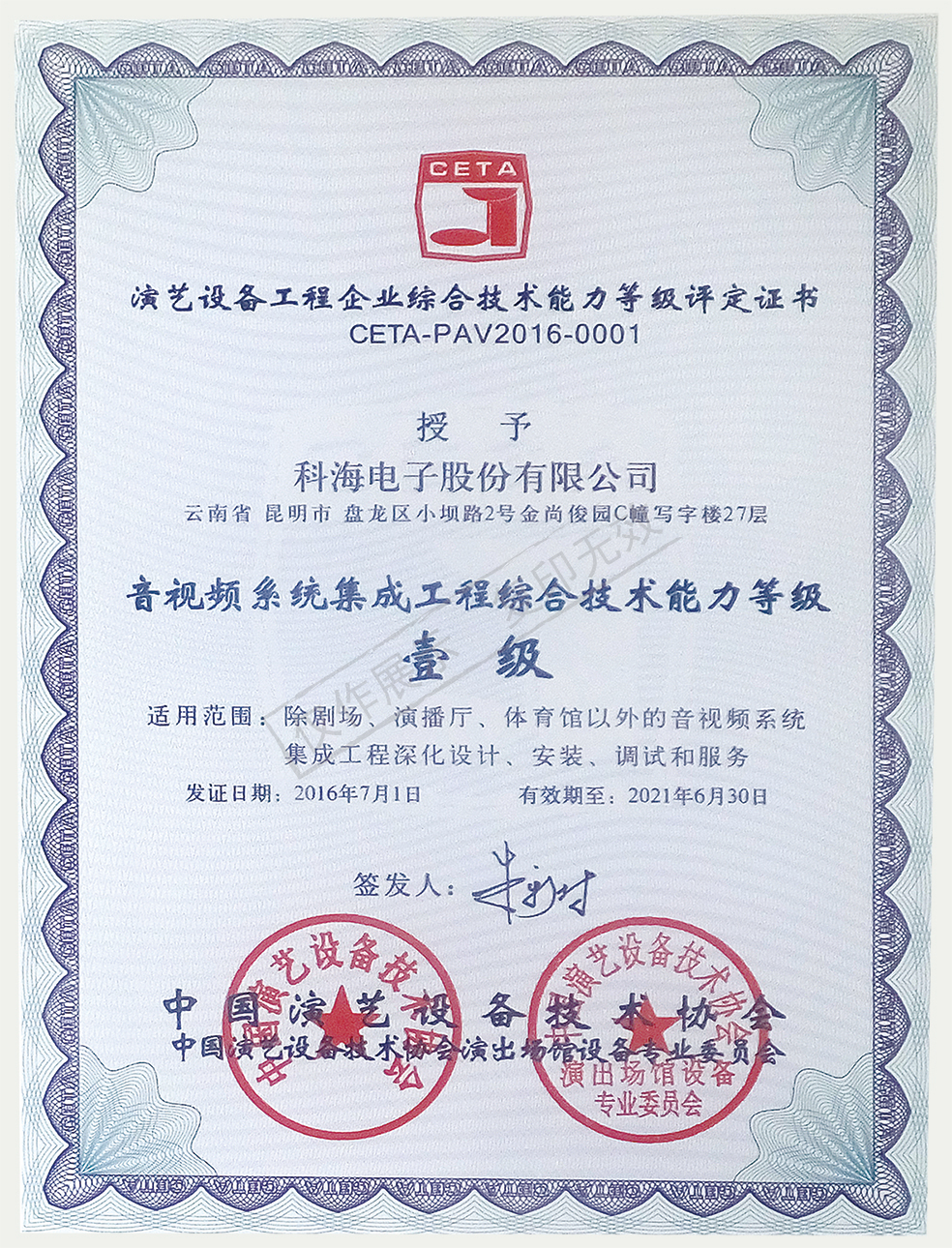 音視頻系統(tǒng)集成工程綜合技術能力等級壹級